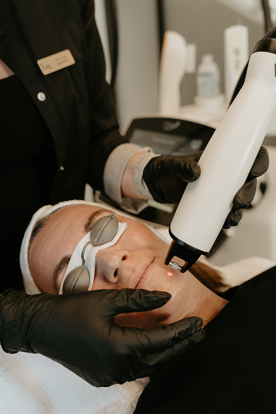 Frax 1550 er en non-ablativ laser – dvs. den ikke laver sår i overhuden. Grundet laserens bølgelængde (1550nm) rammer den kun ved at lave små kontrollerede skader i læderhuden, så hudens naturlige reparationsprocesser/bindevævsproduktion boostes uden at skulle igennem en længere ophelingsfase.